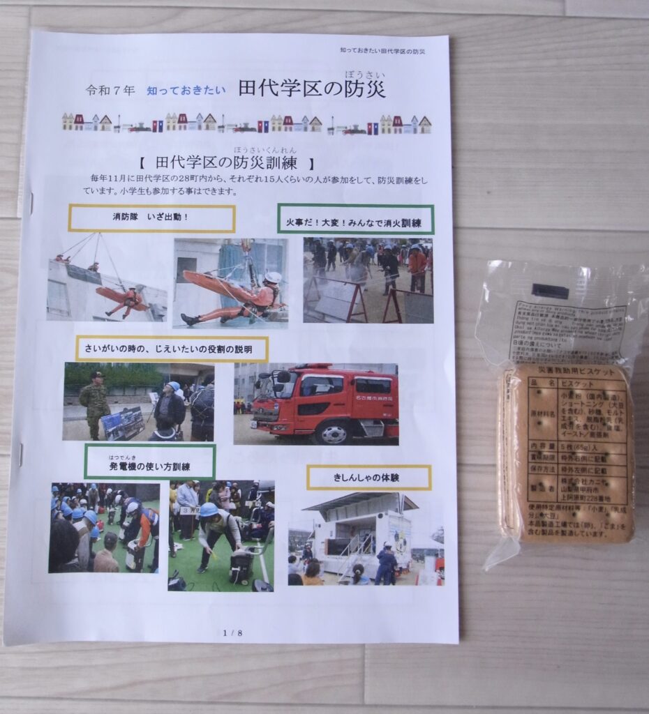 最後に、持ち帰り用の非常食ビスケットを受け取り、満足そうな子どもたち。