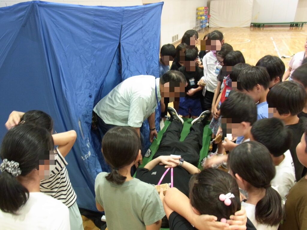 子どもたちも担架を体験させていただきました