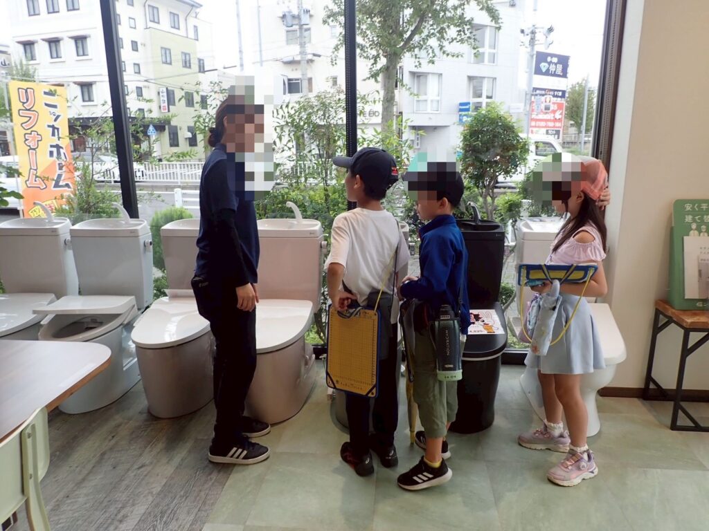 トイレやキッチンの見本がたくさんあって、トイレに座ってみたりキッチンの引き出しをあけてみたりと、色々触れさせてもらえて子どもたちも大興奮。