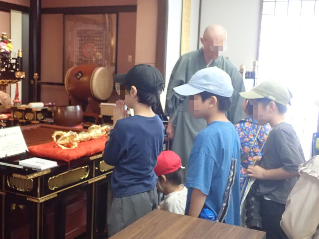 お寺の歴史や、参拝客が多い時間帯、日々のお仕事の内容など、子どもたちは一生懸命メモを取りながら話を聞いていました。