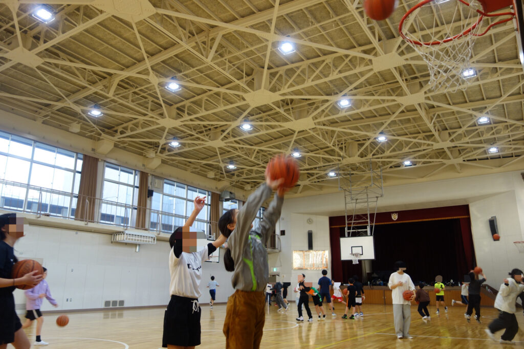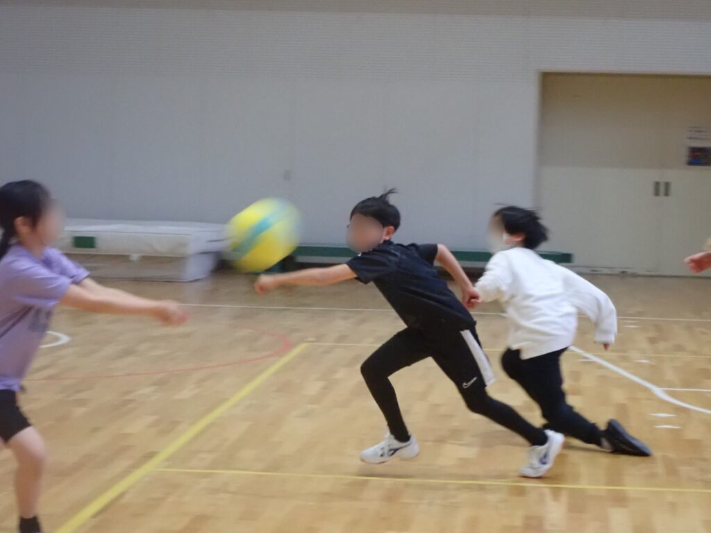 体育館には小さめのコートが3面用意され、指導者3名の見守りのもと、29名が参加していました。