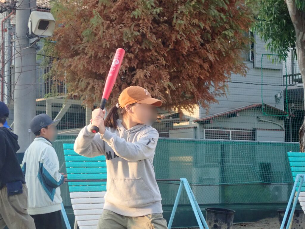 鋭いライナー性の打球を放つ打者もいれば、守備側がノーバウンドでしっかりとキャッチする場面もあり、見応えのある練習となっていました。この日は指導者2名のもと、児童23名が参加し、男子も女子も一緒に元気よく活動していました。
