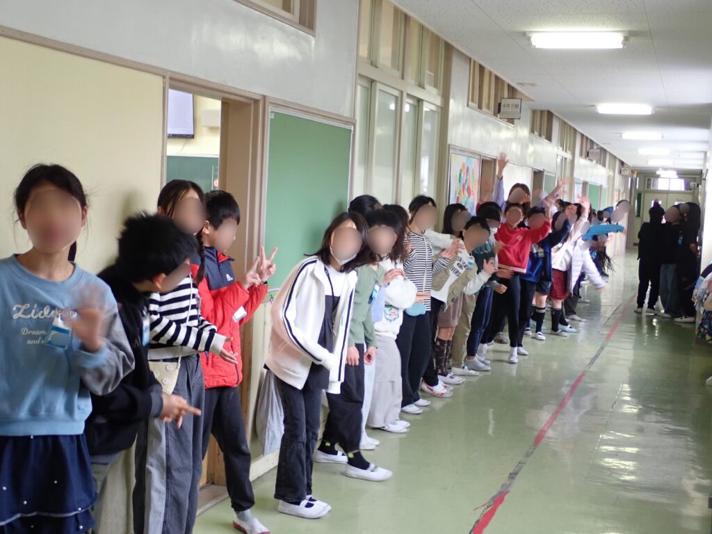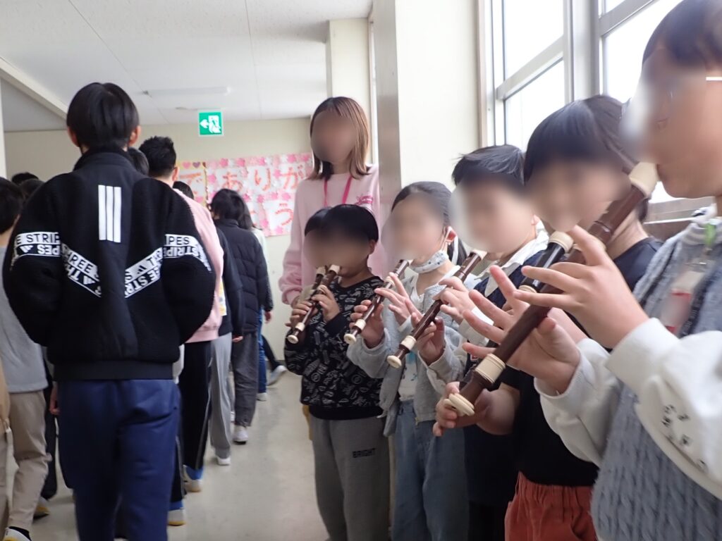 各教室前には下級生が並び、大きな拍手でお出迎え。これまで練習してきた歌やリコーダーの音色が校内に優しく響きます。「ありがとう」と「おめでとう」の思いがこもったあたたかな時間でした。大きな歓声や拍手が巻き起こるたびに、6年生の表情も少し照れながら嬉しそうでした。