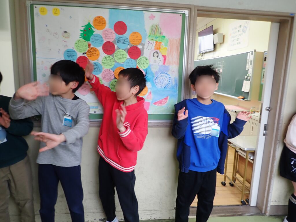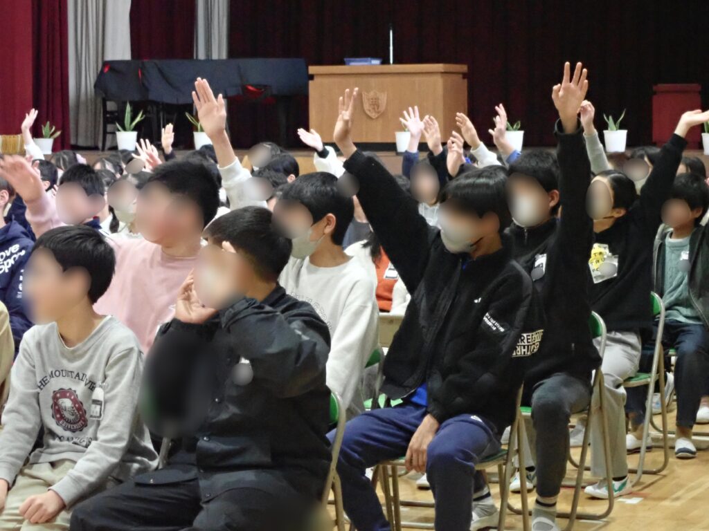 体育館での5、6年生と同じように、教室で見守る下級生も選択肢に手を挙げ、楽しんでいたことでしょう。