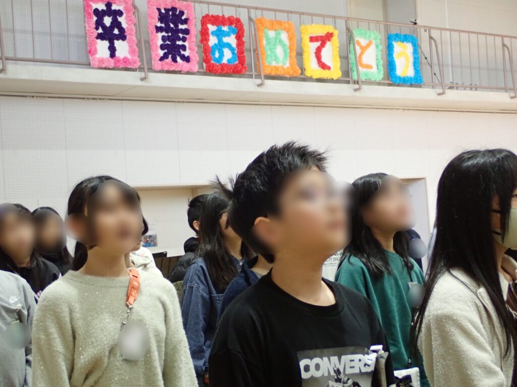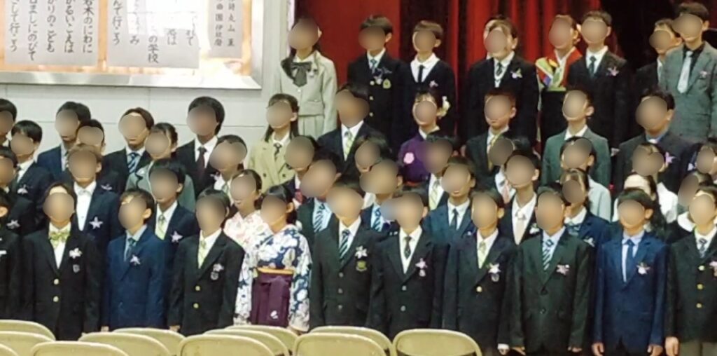 ひな壇へ整列していく姿は、とても落ち着いていました。姿勢よく整然と並ぶ様子から、日々の卒業式練習の成果が感じられます。